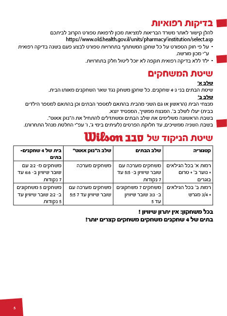 על פי חוק הספורט על כל שחקן המשתתף בתחרויות ספורט לבצע פעם בשנה בדיקה רפואית ע"י מכון מורשה. שחקנים משנתון 94 ובוגרים, חייבים בבדיקה ארגומטרית (מאמץ). משנתון 95 וצעירים יותר, תתבצע בדיקה במנוחה. שעות ניידת בדיקות רפואיות יתפרסמו באתר סבב !!! ניידות בדיקה ימוקמו בהדר-יוסף ובקאנטרי כפר-סבא בתחרות מס' 1 בלבד. ילד ללא בדיקה רפואית תקפה לא יוכל ליטול חלק בתחרויות. |
